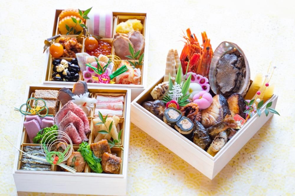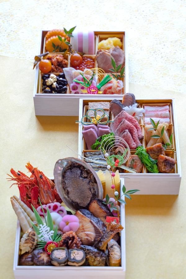 三段重の"生"おせちは、料理長が厳選した食材を用い、祝膳にふさわしい彩り、味わいを心を込めてご用意いたしました。